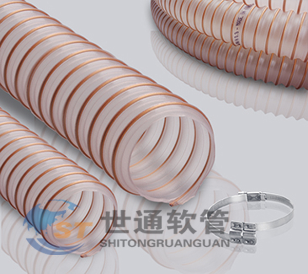 屬性:聚酯型聚氨酯(ESTER PU)軟管,帶高附著力鍍銅鋼絲螺旋加強(qiáng)筋。內(nèi)壁平滑, 以保證物料在管內(nèi)流動(dòng)順暢. 和傳統(tǒng)的橡膠軟管和PVC軟管相比具有極高的耐磨度和使用壽命。不同規(guī)格產(chǎn)品的壁厚相同, 均為0,9毫米。耐礦物油、耐化學(xué)品。具有優(yōu)異的耐臭氧和耐候性,低溫下仍能保持很好的柔軟度。不含鹵素